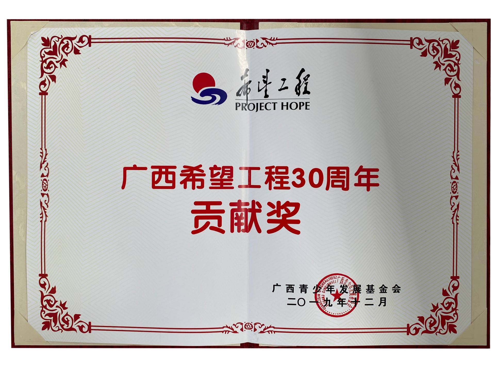 2019廣西希望工程貢獻(xiàn)獎