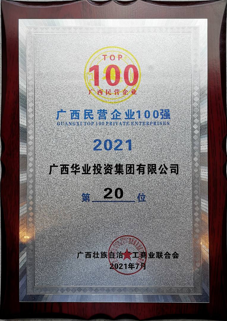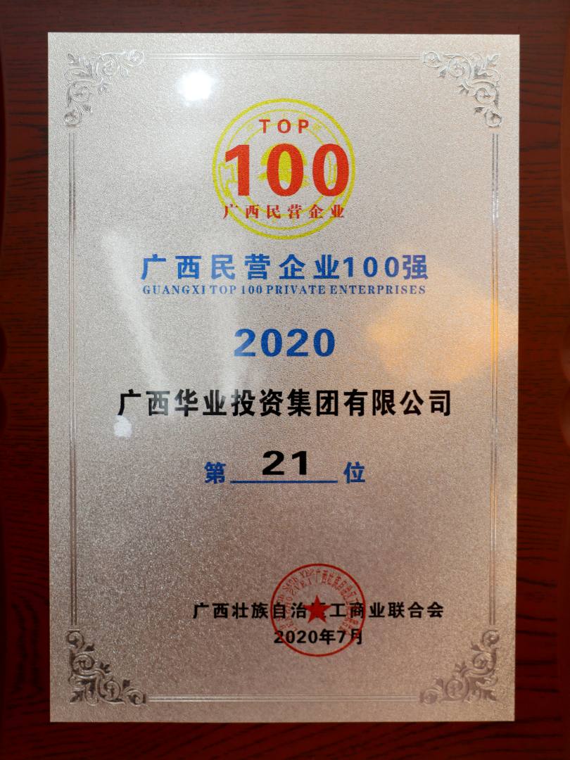 2020廣西民營企業(yè)100強(qiáng)第21名
